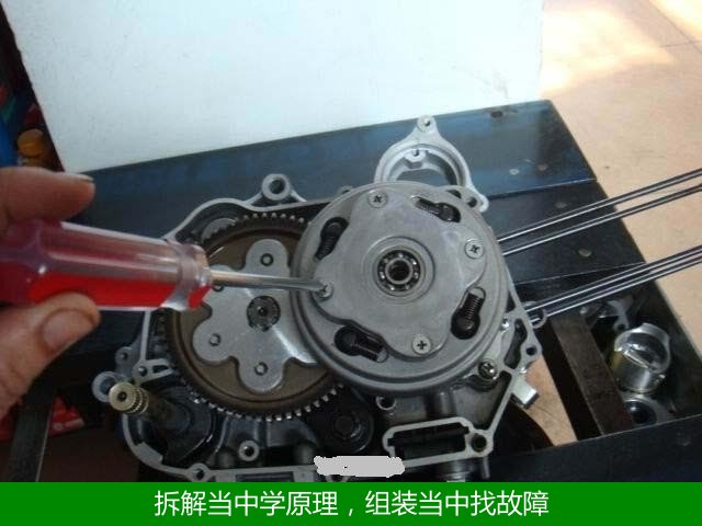 2,這一實訓(xùn)模塊采用真車拆解模式,小到一個摩托車電動車儀表,大到一臺發(fā)動機,全部在實踐中拆解、分離, 終懸掛展示。讓學(xué)生真正動手實操,了解摩托車電動車構(gòu)造細(xì)節(jié),摩托車電動車運作原理,在實踐中掌握真知。
